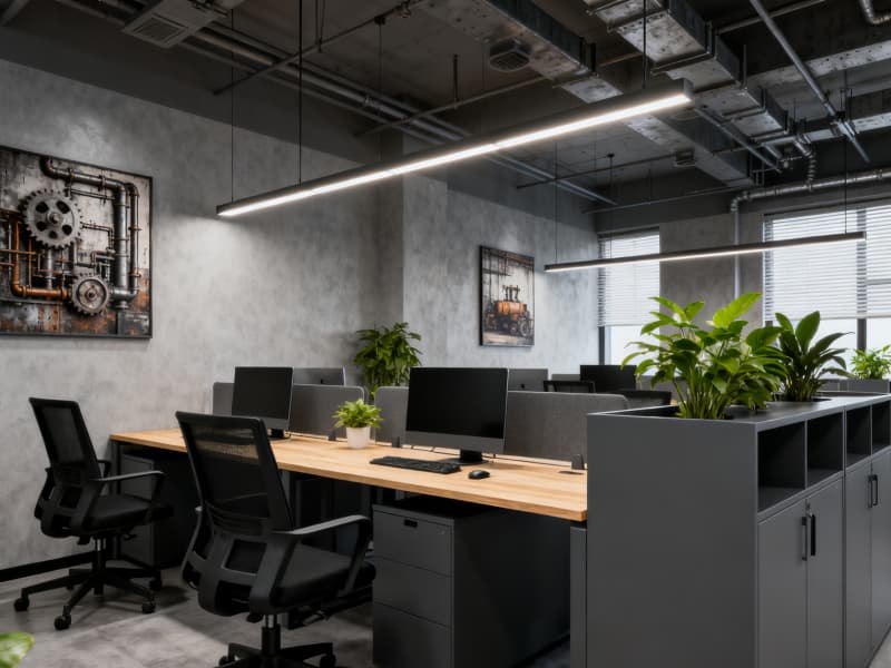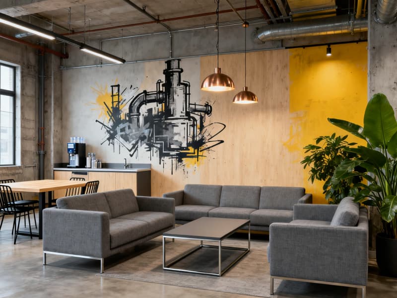 本設計聚焦6000平廠房的工業屬性與實用需求,以現代工業風為核心,打造高效、規范且兼具人文關懷的生產辦公空間。整體色調以深灰、淺灰、黑色為主,搭配局部橙色警示色與淺木色暖調,既契合工業空間的專業質感,又避免環境的冰冷與壓抑。