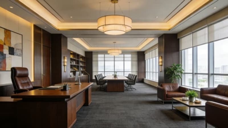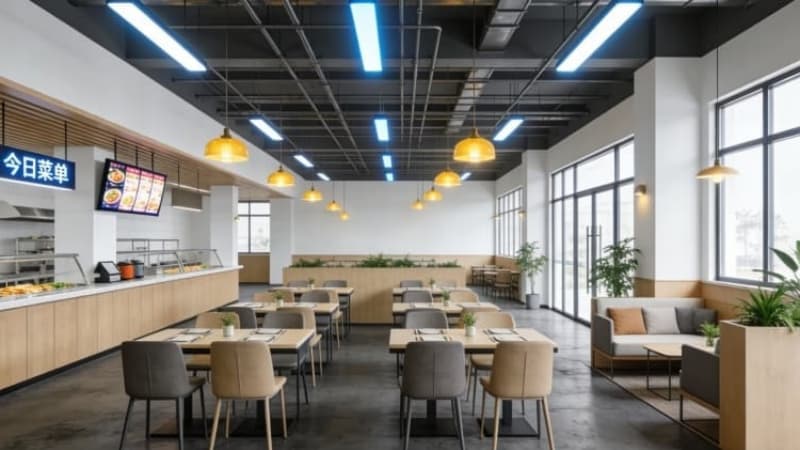 辦公區域采用分層設計,開放式辦公區寬敞明亮,促進員工協作;經理辦公室、總裁辦公室注重私密性與舒適性,搭配簡約商務裝修,兼顧辦公與接待功能。員工餐廳布局整潔,預留就餐與休息區域,保障員工用餐體驗。