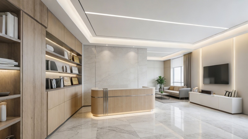本次辦公樓效果圖聚焦核心公共區(qū)域,以現(xiàn)代簡(jiǎn)約風(fēng)格為主,兼顧商務(wù)質(zhì)感與實(shí)用功能。電梯廳整體采用通透化設(shè)計(jì),墻面選用淺灰色啞光石材鋪貼,紋理細(xì)膩且耐臟易打理,搭配金屬線(xiàn)條勾勒輪廓,提升空間層次感。電梯門(mén)采用窄邊鋼化玻璃材質(zhì),搭配隱藏式把手,簡(jiǎn)約大氣且符合現(xiàn)代辦公審美,門(mén)體嵌入柔和感應(yīng)燈光,兼顧實(shí)用性與氛圍感。墻體設(shè)計(jì)注重留白與光影結(jié)合,局部點(diǎn)綴淺色系裝飾面板,打破單調(diào)的同時(shí)不破壞整體商務(wù)調(diào)性。地面鋪設(shè)防滑耐磨地磚,色澤與墻面呼應(yīng),整體空間采光充足,光線(xiàn)柔和不刺眼,既滿(mǎn)足辦公空間的莊重感,又營(yíng)造出舒適、高效的通行體驗(yàn),完美適配中高端辦公樓的定位,凸顯簡(jiǎn)約而不簡(jiǎn)單的設(shè)計(jì)理念。