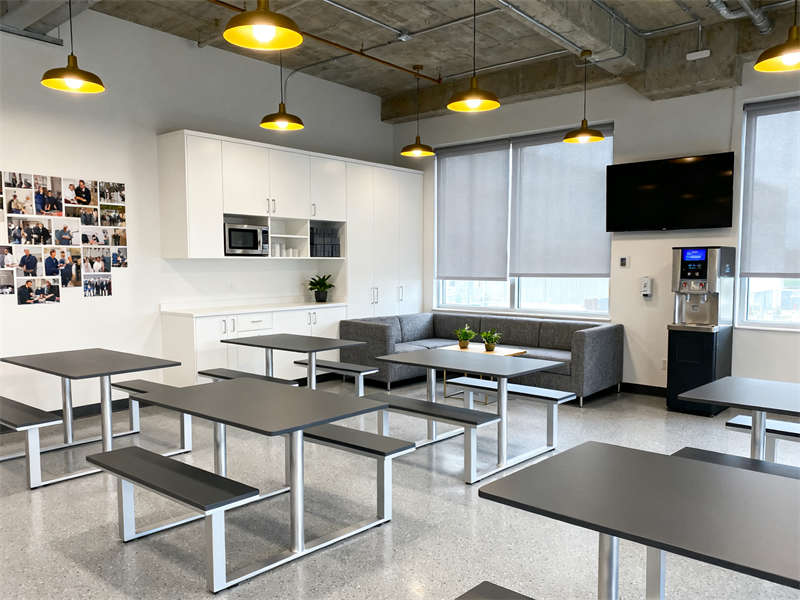 成品檢驗區配備精密檢測儀器,合理的分區設計與適宜的照明,為精準檢測提供保障。員工辦公區與休息區則兼顧實用性與舒適度,開放式辦公布局搭配獨立辦公室,休息區的沙發、餐柜等設施,為員工營造出良好的工作與放松環境。整體設計在色彩與材質運用上保持高度統一,既體現工業廠房的專業特質,又增添了人性化氛圍。?