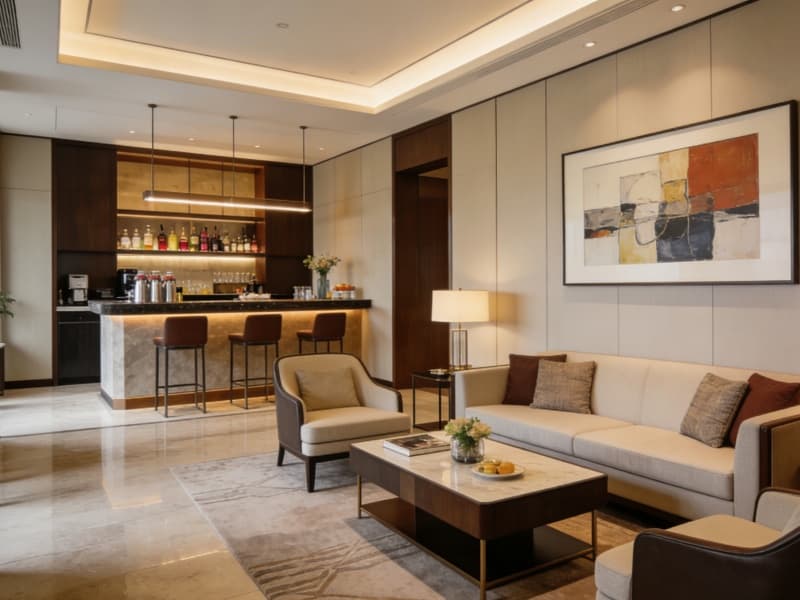 五層為特色配套層,設(shè)有行政酒廊、健身房與SPA區(qū)。行政酒廊提供專(zhuān)屬服務(wù),健身房配備先進(jìn)器材,SPA區(qū)以自然色調(diào)為主,搭配舒緩音樂(lè),讓客人放松身心。