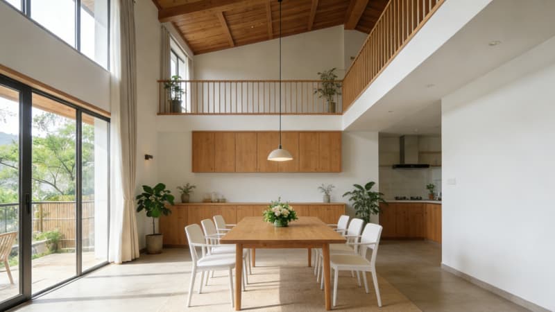 設計同時兼顧實用性與打卡屬性,公共區(qū)域設置徽派文創(chuàng)展示區(qū)、咖啡吧臺與親子互動角,滿足不同客群需求。整體空間選用本地環(huán)保建材,搭配暖調(diào)燈光系統(tǒng),既彰顯合肥地域特色,又為游客與本地居民提供高品質(zhì)的休憩、社交場景,成為合肥民宿設計中徽風與現(xiàn)代融合的典型案例。