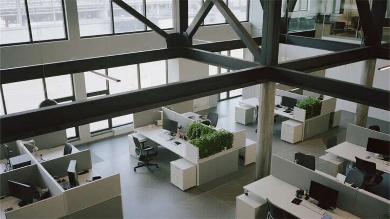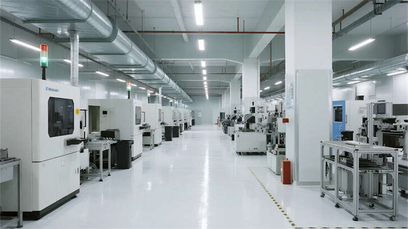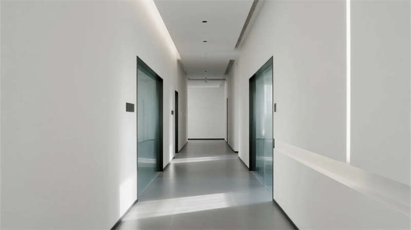 內部空間延續(xù)"少即是多"哲學:生產(chǎn)車間以銀白為主調,設備管線規(guī)整排布于頂棚,環(huán)氧地坪反射線性燈光,營造科技感十足的無塵環(huán)境;辦公區(qū)突破傳統(tǒng)隔斷,玻璃幕墻引入外部景觀,綠植墻自然劃分區(qū)域,形成通透開放的協(xié)作場域。